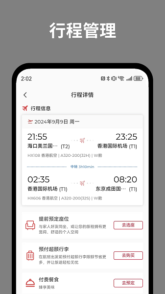 香港航空app可以让大家在这里轻松预订机票,能够按照需求选择往返的航班预订机票,每天都可以自由查询航班的信息,最新的航空公告也可以进行查看的,航班延迟也会及时的进行提醒,大家也可以在线进行值机选座了,非常方便。