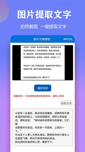 文案提取侠软件可以帮助大家轻松提取各种文案,从音视频中或者图片中进行提取,支持识别各种语言文字,每次提取文案的速度非常快,让大家在各种场合都可以进行使用的,识别的文字都可以进行保存的,怎么复制使用都支持。