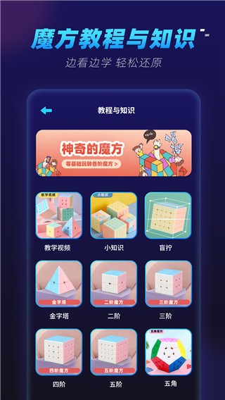 5、魔方教程:提供经典实用的魔方教学,是用户的随身魔方学院,随时随地学习魔方还原技巧。