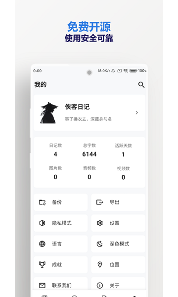 侠客日记app可以让大家在手机上自由的进行记事了,想怎么新建日记都行的,能够将每天发生的趣事记录下来,还可以记录每日的心情了,将重要的事情也可以轻松记录,设置密码后只有自己才可以查看所有的记事内容,很安全的。