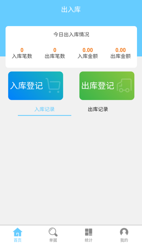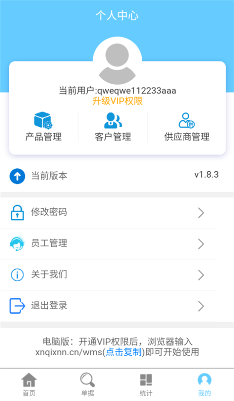 1、打开出入库管理app,首页在我的界面将产品管理、客户管理、供应商管理信息录入