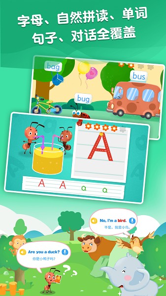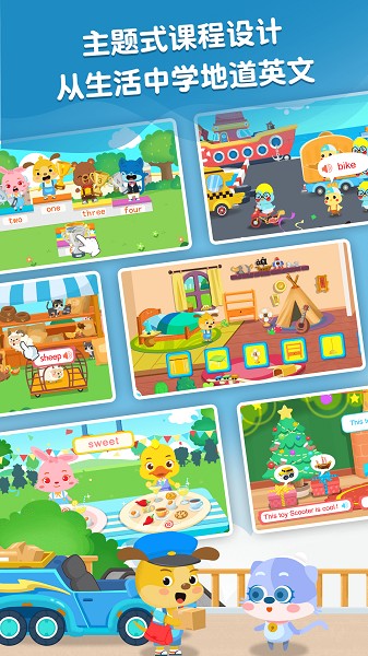 动画视频与游戏为形式,引导孩子在玩中学,玩中培养英语思维。