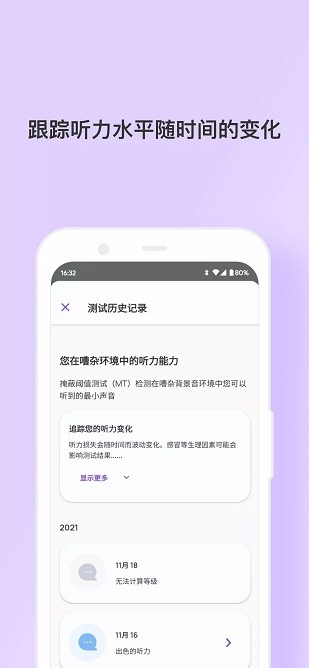 2、能在这里进行实时的检测,自己的听力是否下降都能一清二楚。