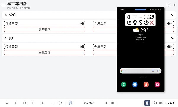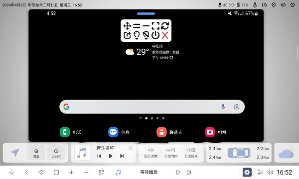 3、在车机设备上也可以全屏显示手机的画面,也可以开启小窗口显示。