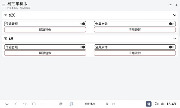 易控车机版app可以将手机与车机设备进行连接,能够将手机的画面快速投屏到车机设备上进行显示,显示的画面都非常的流畅,想怎么进行操作都是支持的,能够让车机设备使用第三方的软件,无需认证就可以安装了。