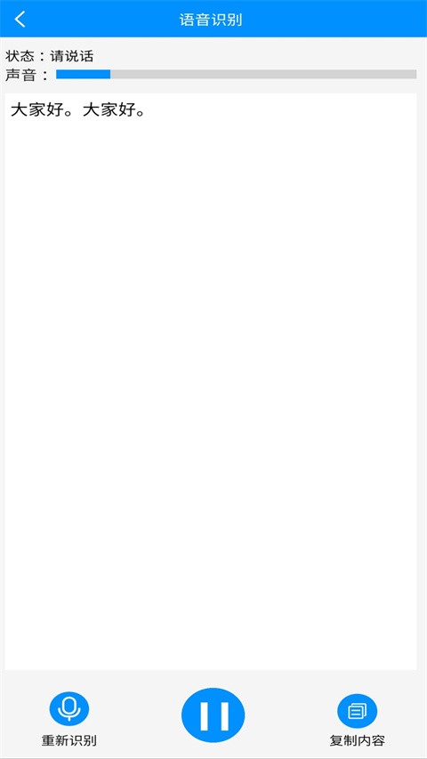 4、新增语音识别功能,可识别普通话、粤语、英语。 识别效率非常高。 输出的文本可以自动标点符号,并且可以复制编辑框的内容。