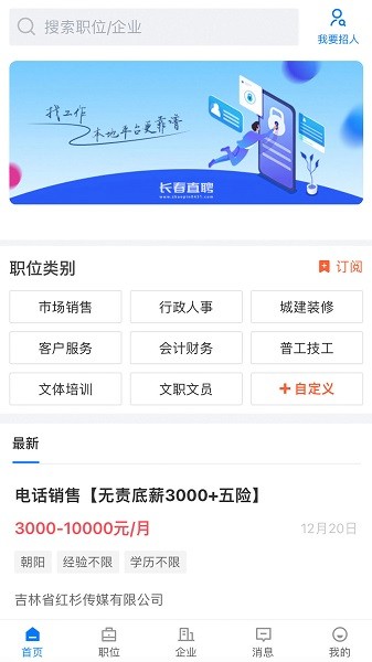 长春直聘软件可以让大家在这里自由找工作,想怎么分类筛选各种工作岗位都很方便的,还根据自己的需求进行搜索了。线上可以不断优化自己的简历,及时投递简历,感兴趣的工作岗位都可以一键投递,及时查看结果了。