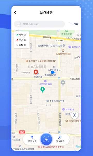 1、平台上可以寻找各地的充电站点,想怎么进行筛选都支持的。