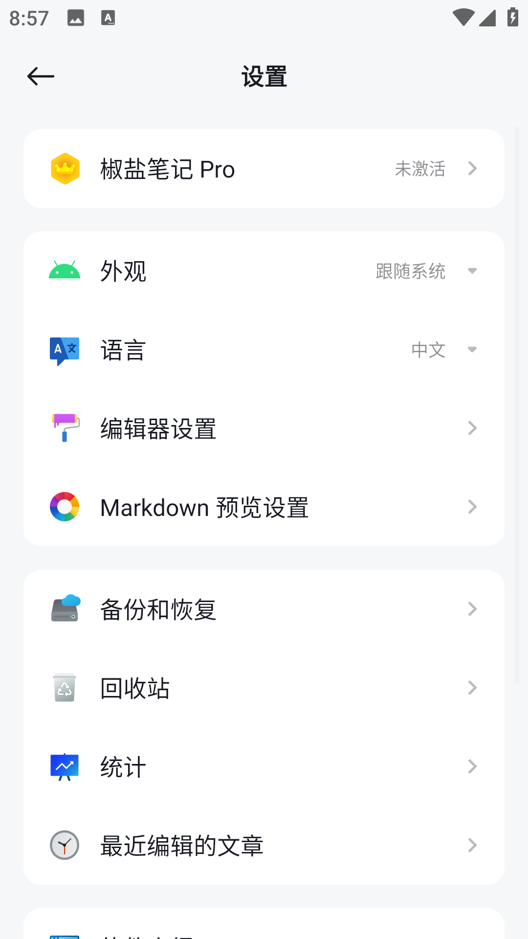 注重细节 实时字数统计 支持撤销、重做功能 支持单词联想输入(适配 Android 原生等) 适配 Android 10+ 深色模式,支持设定跟随系统、浅色模式、深色模式