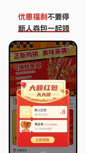 正新鸡排app最新版让大家在网上自由点餐,实时定位周边的店铺,能够快速的进入店铺点餐了,新人可以领取大额度的优惠券,想怎么进行省钱定外卖都行的。平台上可以选择配送到家或者门店自取,根据需求进行选择了。
