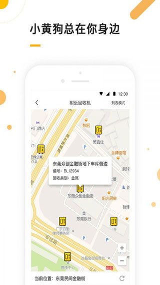 一键查看附近回收机,小黄狗一直在你身边。