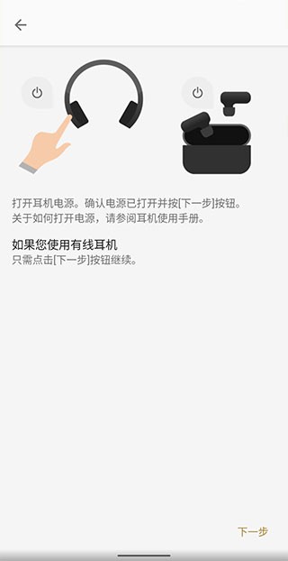1、打开耳机电源后打开Sony耳机App,并按照提示将蓝牙以及位置信息服务打开,并在主界面等待手机识别;