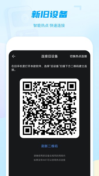 超酷的用户体验,换机或传输只需扫一扫对方手机即可。