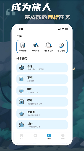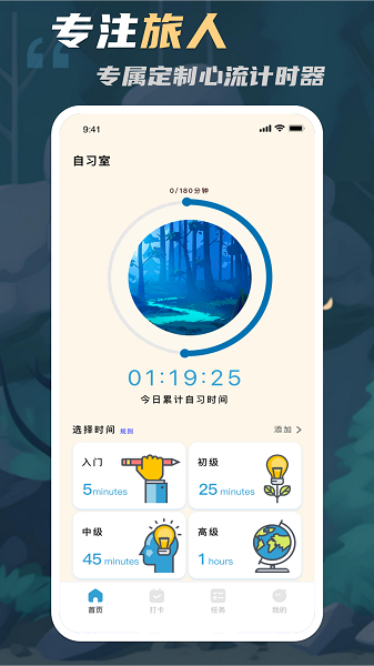 专注旅人app免费版可以让大家在学习上或者工作上都可以进行专注了,随时打开专注模式,想怎么进行记事都行的。线上可以自由的设置专注的目标,能够养成良好的习惯,想怎么进行设置都是支持的,之后还可以进行打卡了。