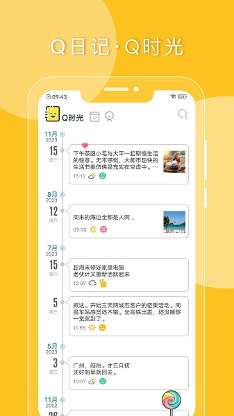 2、日常可以快速选择心情进行记事,之后按照时间轴查看日记很方便。