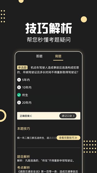 科目一、科目四的所有题型全部涵盖,每道题目都有详细分析(涵盖考试技巧),都是可以根据需求练习。