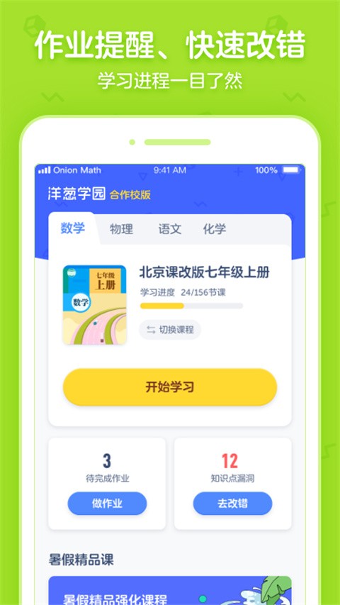 洋葱学园合作校版是一款专为校园学习场景设计的专属应用程序,旨在帮助学生更加便捷地在校园学习,为他们提供更丰富的学习体验。在界面设计方面,软件采用了小清新的界面设计,这个界面非常简单,可以帮助学生快速找到他们需要的东西。该软件以互联网技术为基础,人工智能为辅,AI智能自动预测知识点掌握情况,精准匹配专项练习,学以致用,层层分析重难点,帮助建立解题思维,举一反三,无论是视频学习、练习巩固还是智能改错等功能,都能为学生带来高效、便捷的学习体验,有需要的用户直接下载就可以开始体验了。