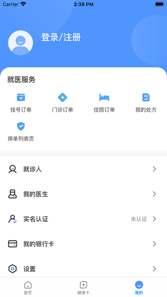 1、在健康内江软件的“我的”功能界面中选择点击“实名认证”功能选项。