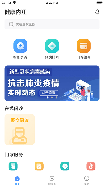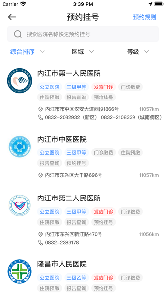 1、线上可以让大家寻找内江本地医院,能够选择对应医院进行网上挂号。