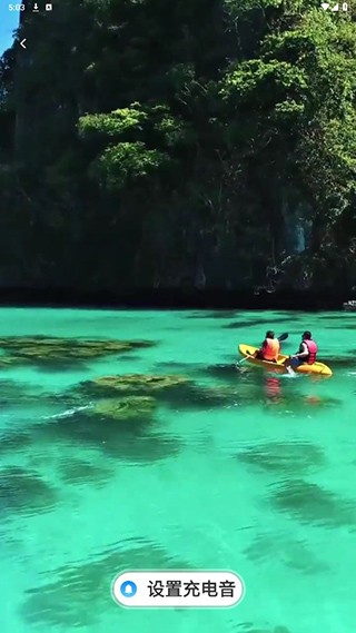 用户可以在首页随意点击壁纸。 进入后点击下方可以设置充电声音。