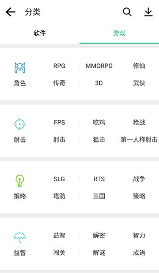 2、点击游戏,根据游戏类型筛选,就可以找到同类别的软件。