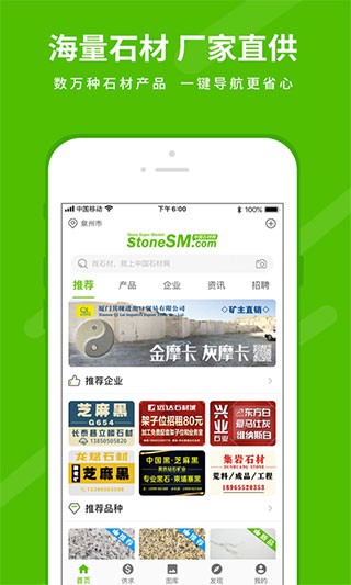 2、登录后,大家可以看到首页中推荐的企业,或者是根据自己的情况在搜索框中输入自己需要的石材。