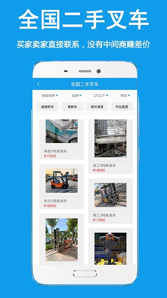 2、为大家带来了叉车多种多样,可以根据需求搜索需要的叉车了。