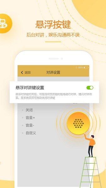 通过设置ptt按键和悬浮按键,可以实现一键对讲,无论在玩游戏还是看视频,随时可以按下发起说话;