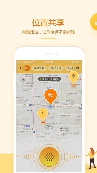 2、能够在这里快速定位好友的位置,共享自己的对讲机位置也行。