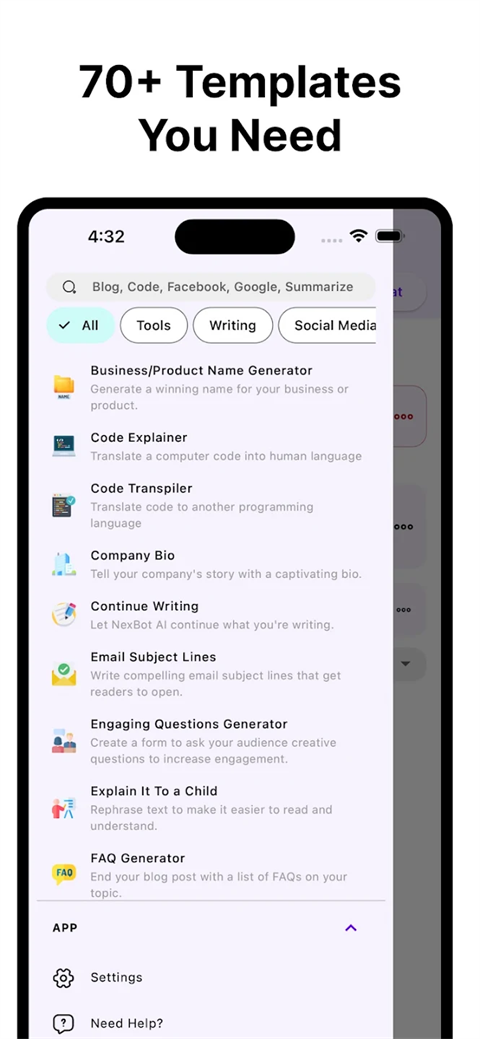 人工智能作家助手是一款自动帮忙写作文案的软件,它可以帮助忙碌的内容创建者和企业家为电子邮件、广告、网站、列表、博客等创建高质量、引人入胜的内容。您只需在应用程序中选择一个模板,输入您的需求,它就会生成一个输出列表供您选择。除此之外人工智能作家助手还可以通过添加您自己的关键字和短语来自定义内容,如果您想为视频添加清晰独特的标题和描述,想要快速创建精彩的社交媒体帖子,想要撰写精彩的产品评论,有需要的用户直接下载就可以开始体验了。