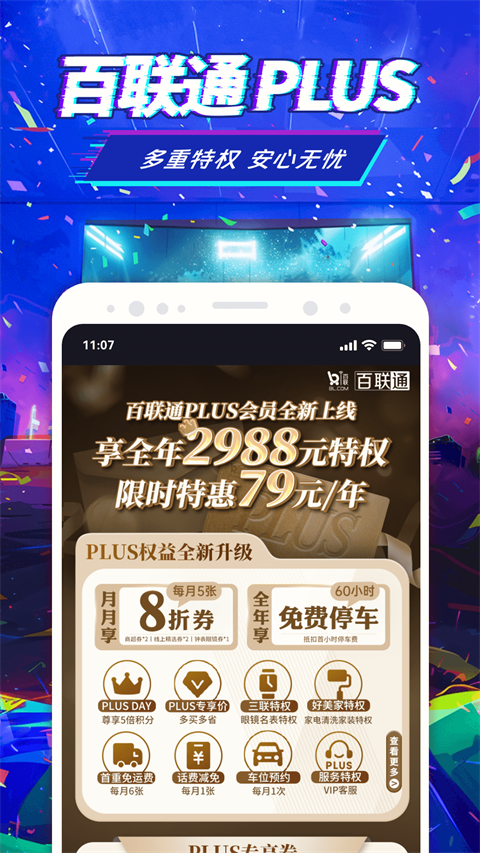 积分支付、自助支付; 自动升降杆,快速退出; 还可以领取随机红包! 百联通会员每月将获得专属停车券~~