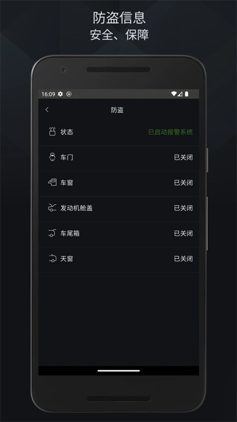 2、这里就可以看到我们的车窗、天窗、后备箱、发动机盖以及车门的关闭状态。