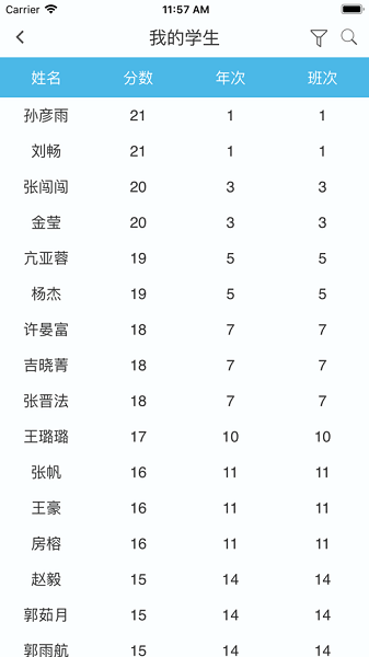 4、可以让大家在这里快速查看班级的分数情况,都能进行排名的。