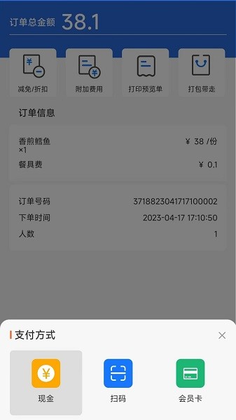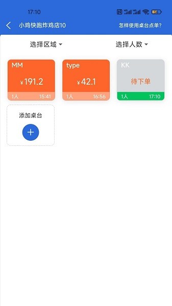 3、能够显示每个订单的人数和区域了,上菜的时候都非常便捷。