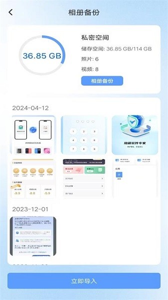 可以对导入的相册进行加密处理,设置隐私保护密码来使用。