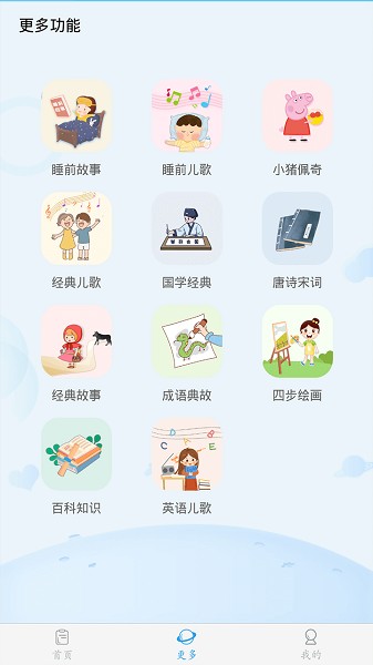 4、更多版块,有各种小故事和儿歌、百科,点击即可查看具体内容。
