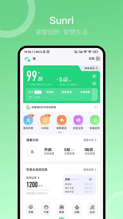 Sunri体脂秤是一款配合智能硬件设备使用的运动健康、身体检测物联互通IoT APP,它可以连接设备实时记录和测量运动数据、体重记录等,并根据这些数据提供科学的运动和健康指导,它还可以手动记录体重并定期分析体重数据的变化。此外Sunri体脂秤还可以监控和管理您家人的身体健康状况,还有大量有趣的游戏和任务可以赚取积分并兑换礼物,Sunri拥有专业的健身团队,不断更新运动、饮食、健康自我评估等相关知识,更新更多更符合国人习惯的减肥资讯,拥有超过百万热爱运动的朋友 健身见证你的蜕变,陪伴你左右,有需要的用户直接下载就可以开始体验了。