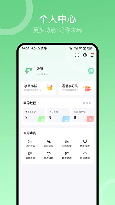 2、连接体脂秤,检测身体17项健康数据,全面了解自己;