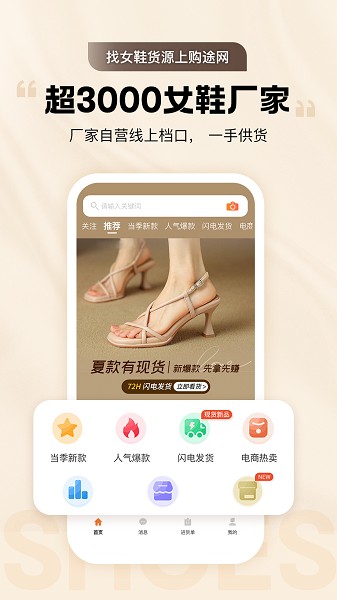 1、线上聚合了全国各地的女鞋货源,都是厂家直发,能安心的采购。