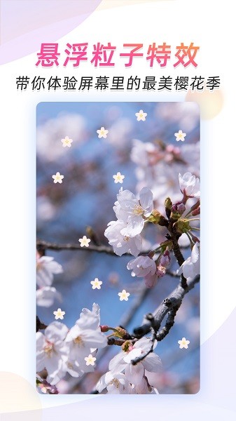 各类创意美化模板,静态壁纸模板or动态壁纸模板任你挑选,添加关于你的个性元素,悬浮粒子特效,烂漫樱花朵朵飘荡,一键定制私人专属壁纸!