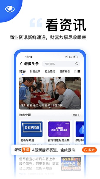 商业情报速递,行业热点追踪,实时呈现老板们都爱看的资讯。