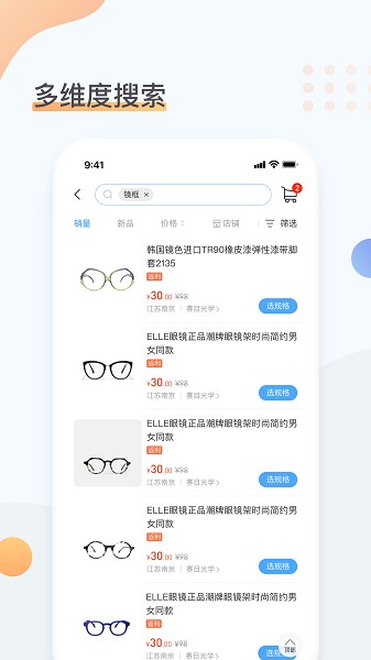 2、可以让大家搜索自己心仪的眼镜,查找起来都非常的轻松了。