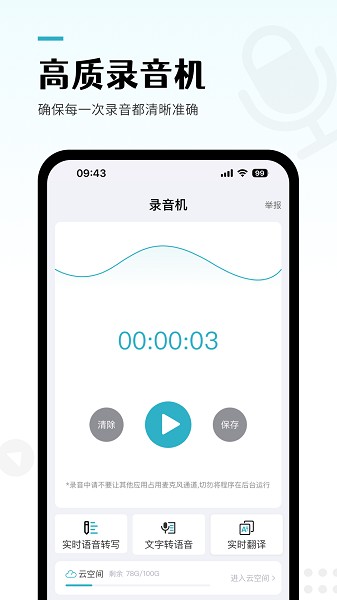 提供高清晰度录音,支持多种场景选择,确保每一次录音都清晰准确。