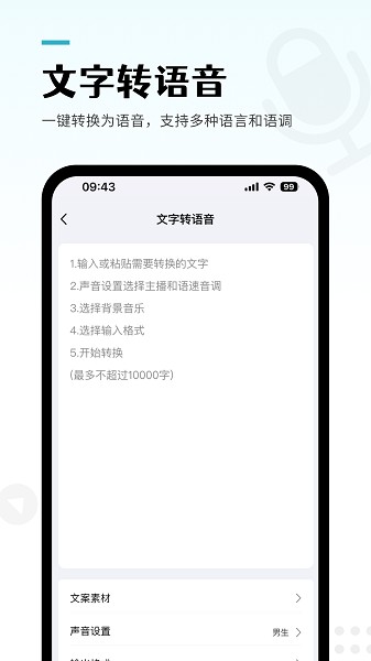 将文字材料一键转换为语音,支持多种语言和语调,让阅读变得更加轻松。
