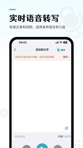 录音转文字pro软件可以让大家在手机上实时的将各种音频文件转换文字,想转换什么语言文字都行的,能够精准的进行识别了。平台上带来的工具可以免费的进行使用,想怎么进行设置都是支持的,能够根据需求进行操作了。