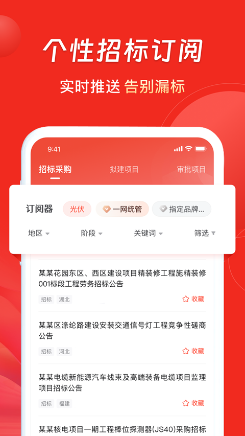 为业务人员提供招标信息实时推送提醒,接收最新招标信息,项目动态订阅提醒,随时随地接收商机。