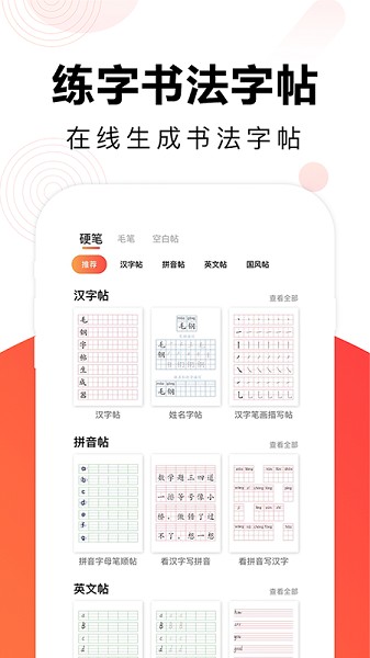 4、在这里也可以快速的生成字帖了,想怎么进行练字都都是支持的。