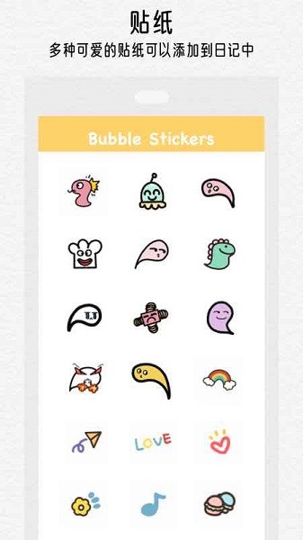 用户可以挑选喜欢的贴纸添加到日记中,让你的日记充满乐趣。