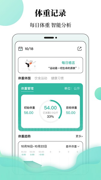 建立身体档位,记录体重、体型、体围,清晰地展示目标体重和减肥目标,让你更快更好地进行减肥打卡计划。