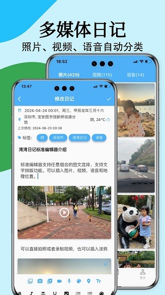4、同时支持文本,图片,视频,语音,涂鸦方式写日记,想写就写,想录就录。